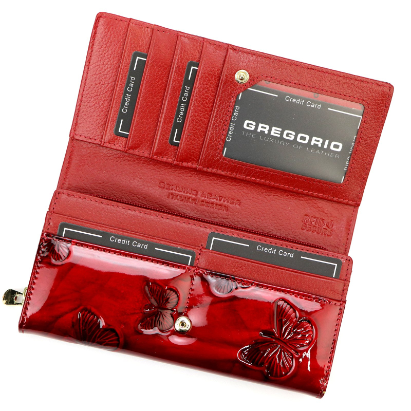 Kožená dámská peněženka s motýly v nádherné červené barvě, je díky velkému množství kapsiček nejen krásná, ale i praktická.