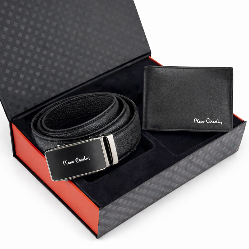 Značková dárková sada pro muže Pierre Cardin obsahuje luxusní pánskou peněženku z příjemné měkké přírodní kůže a automatický opasek Pierre Cardin, vyrobený taktéž z přírodní kůže.