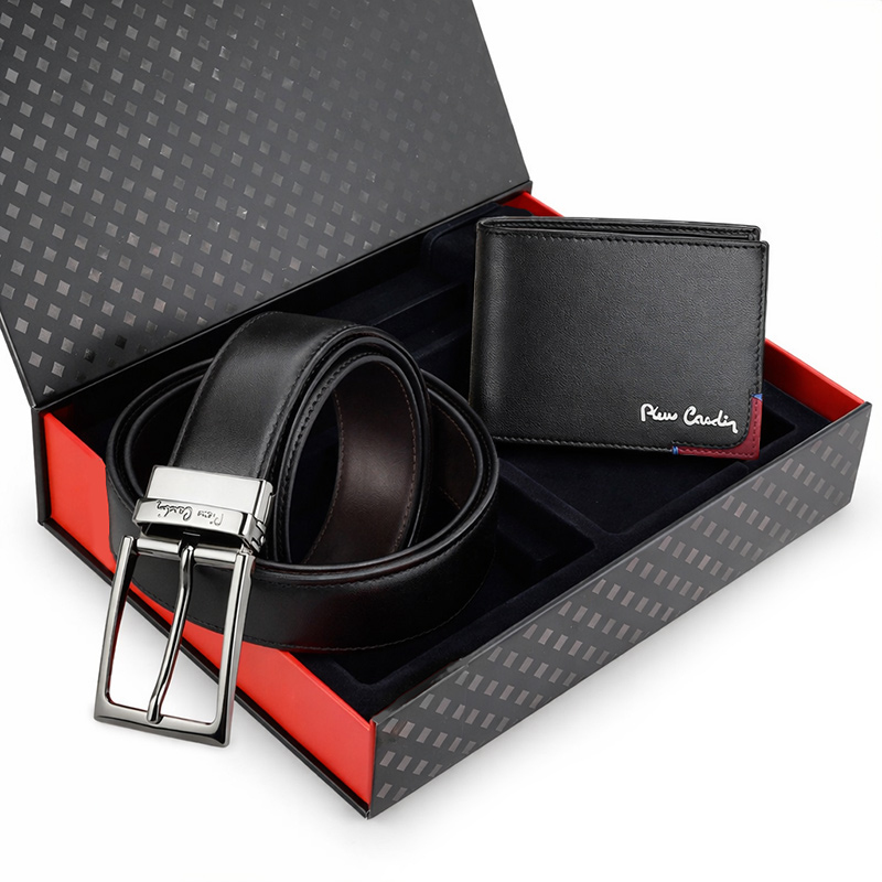Značková dárková sada pro muže Pierre Cardin obsahuje luxusní pánskou koženou peněženku a oboustranný opasek Pierre Cardin, vyrobený taktéž z přírodní kůže.