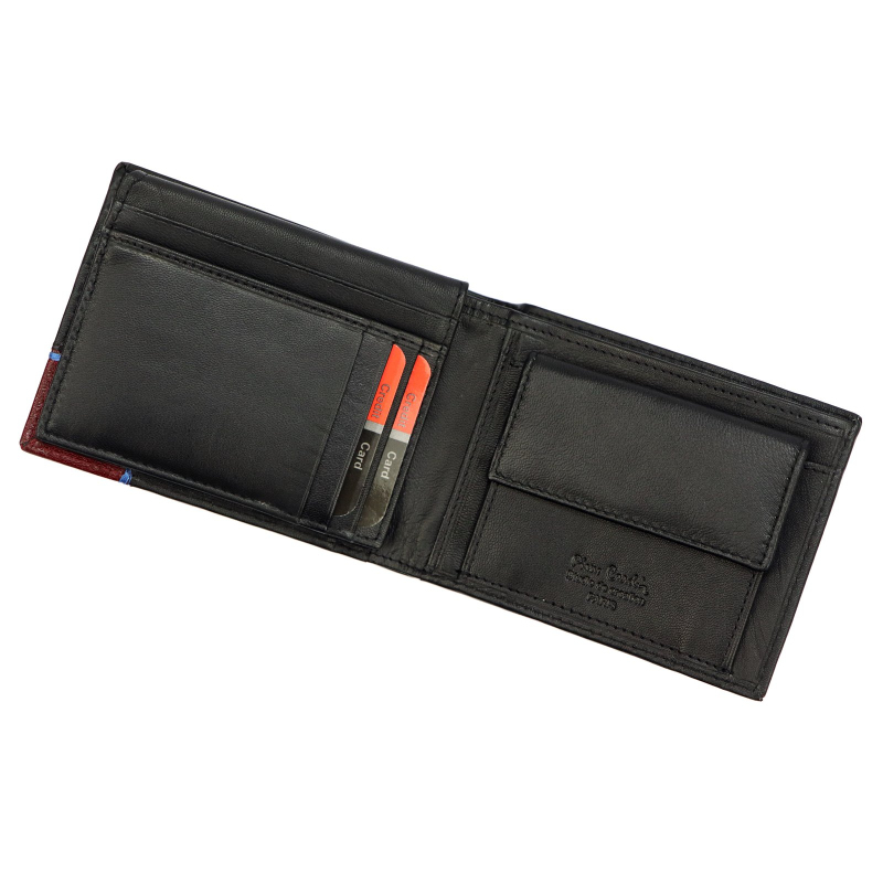Peněženka Pierre Cardin patří mezi oblíbené tenčí peněženky (mezi muži vyhledávané), ale přesto pojme hodně věcí. Má 2 přihrádky na bankovky, jednu na kovové mince. Dále je uvnitř pánské peněženky 8 přihrádek vhodných na karty a tři větší kapsičky například na technický průkaz, nebo jiný větší doklad.