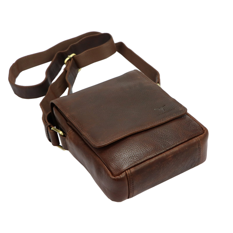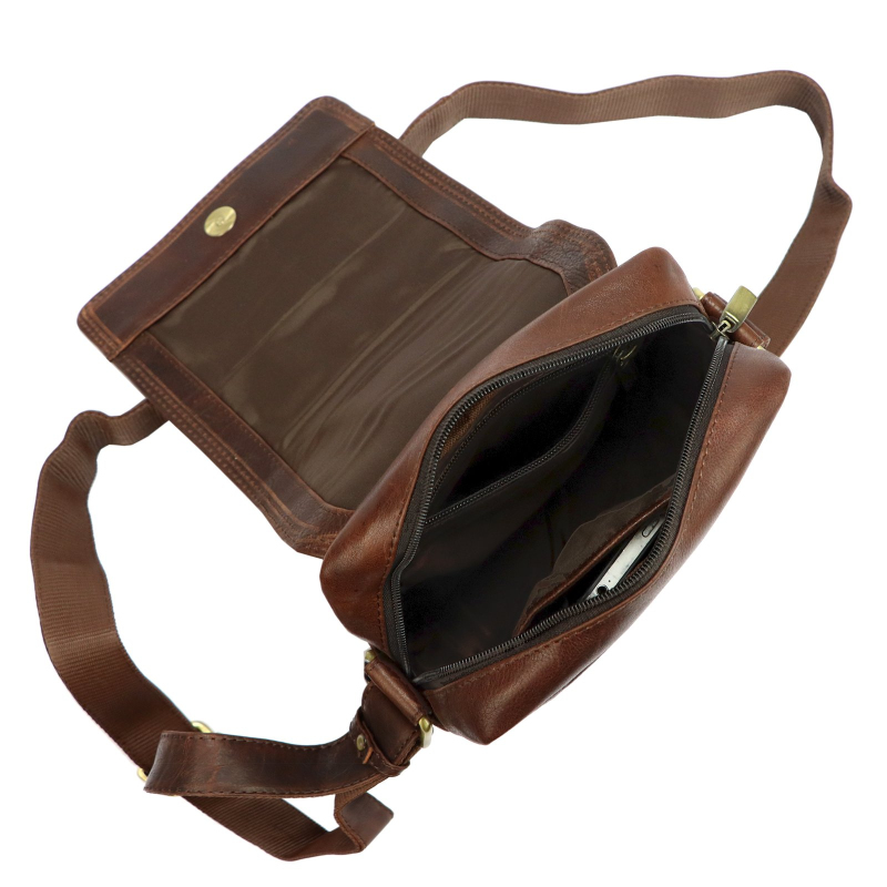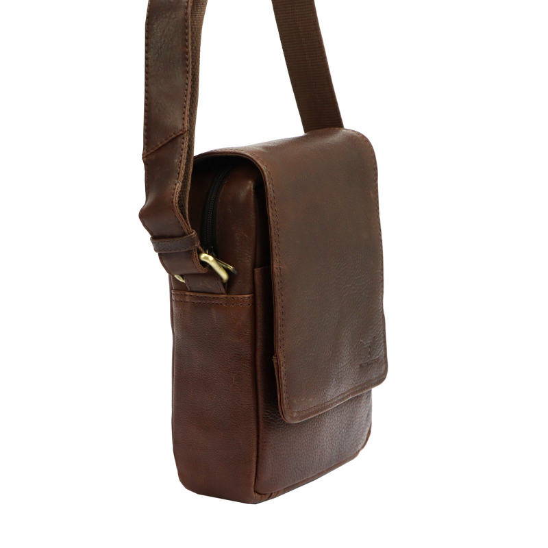 Hnědá pánská kožená taška je vyrobená z kvalitní, přírodní lícové kůže a má jednokomorové uspořádání. Hlavní kapsa obsahuje kapsičku na telefon a kapsu se zipem, celá se pak zapíná také na zip.
