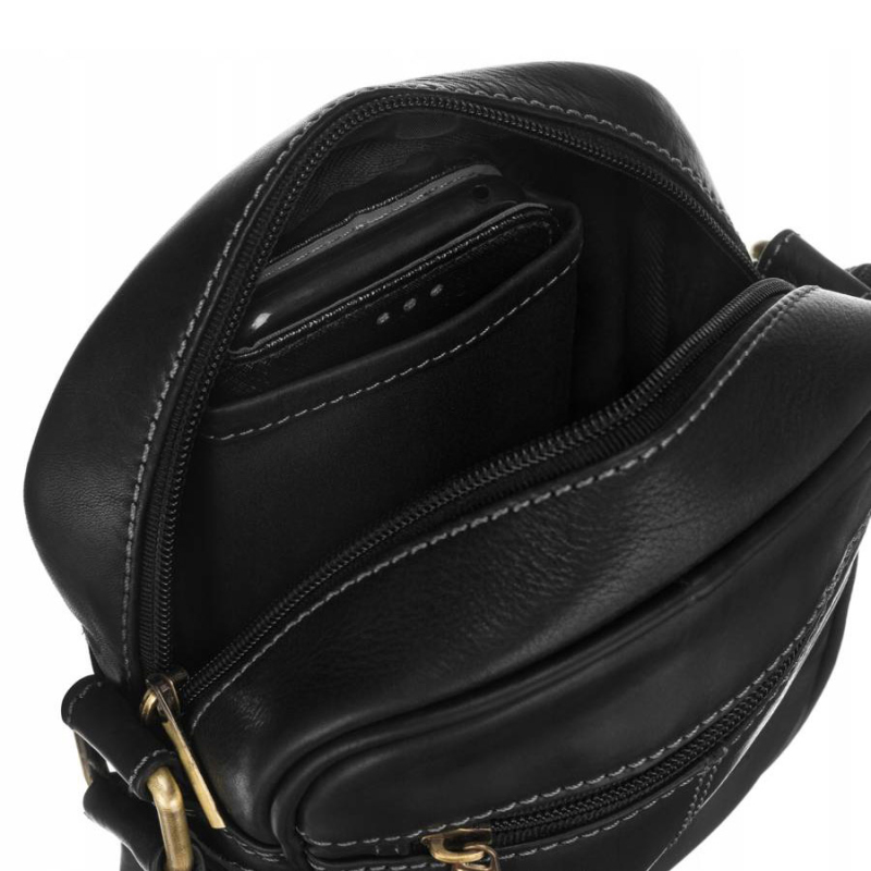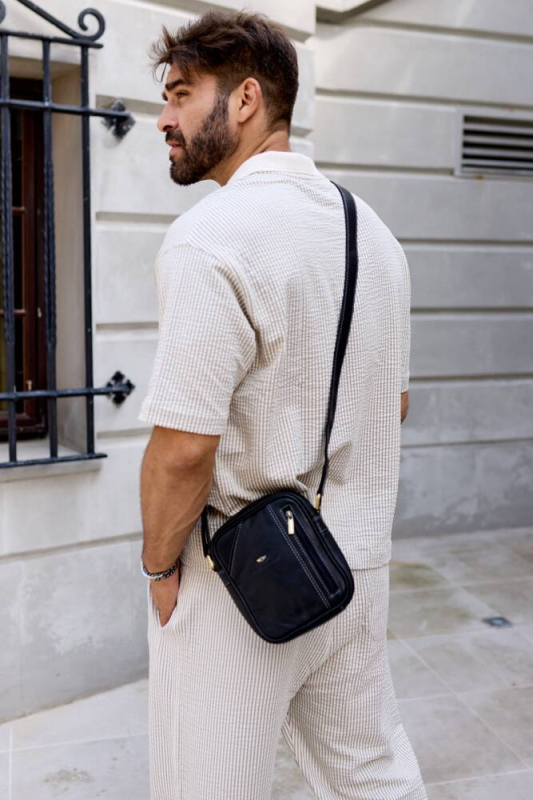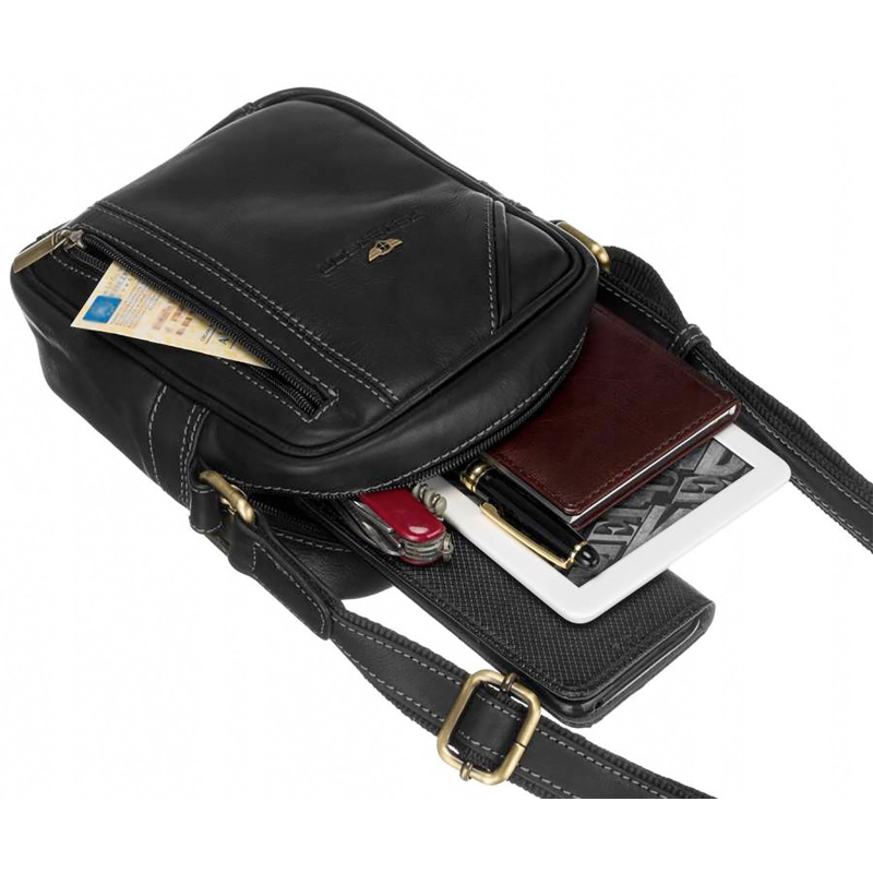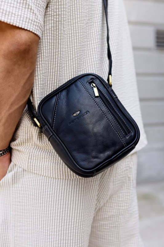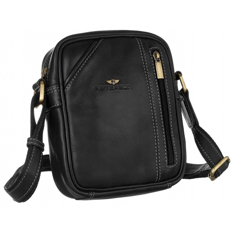 Značková černá pánská kožená crossbody taška Peterson je vyrobena z kvalitní přírodní kůže. Pánská crossbody je rozdělena na hlavní velkou kapsu, která se uzavírá pomocí zipu, vepředu pak najdeme kapsu na zip pro rychlý přístup k častou používaným věcem. Zadní strana pánské crossbody tašky rovněž obsahuje uzavíratelnou kapsu na zip.