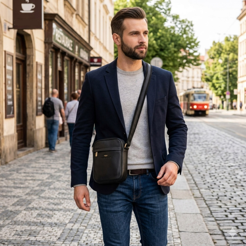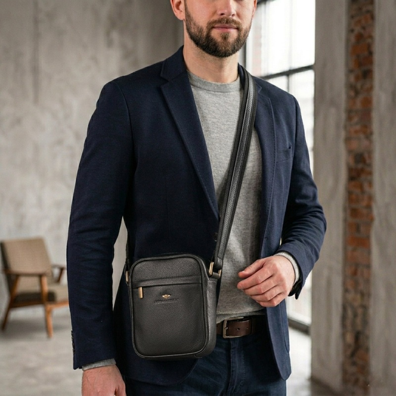Značková černá pánská kožená crossbody taška Peterson je vyrobena z kvalitní přírodní kůže. Pánská crossbody je rozdělena na hlavní velkou kapsu, která se uzavírá pomocí zipu, vepředu pak najdeme kapsu na zip pro rychlý přístup k častou používaným věcem. Zadní strana pánské crossbody tašky rovněž obsahuje uzavíratelnou kapsu na zip.