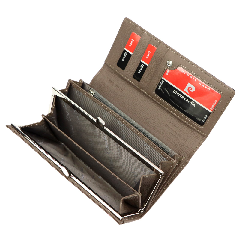 Značková béžovo šedá dámská peněženka značky Pierre Cardin je vyrobena z kvalitní přírodní kůže.