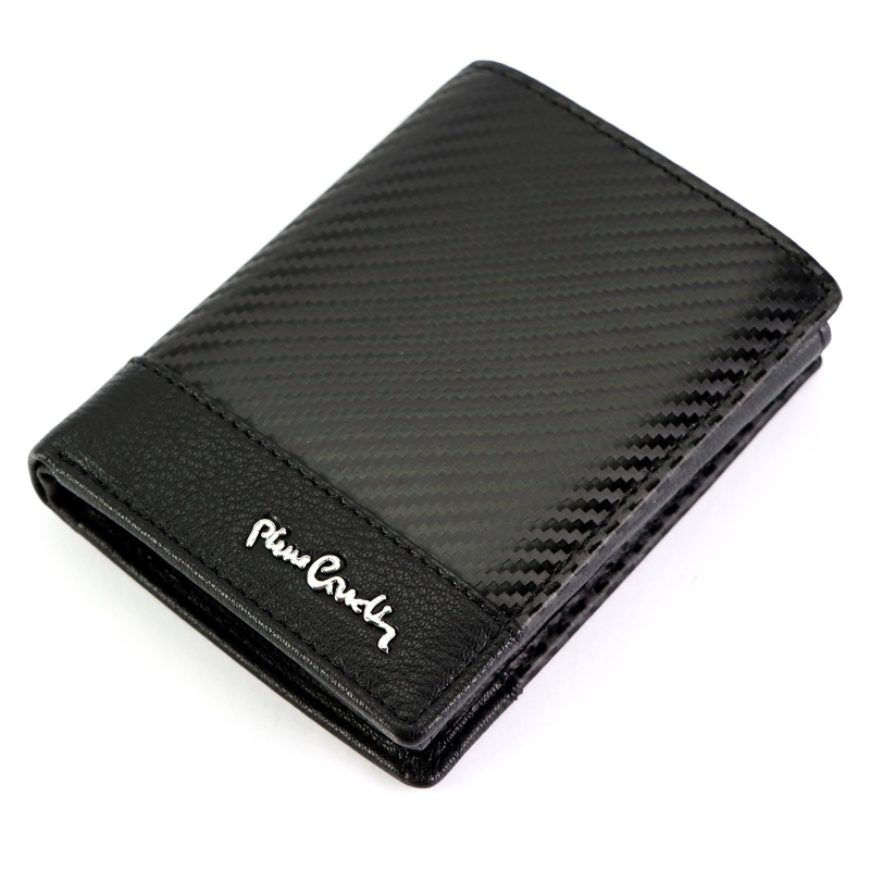 Značková kožená karbonová peněženka je vyrobená z přírodní kůže a je upravena do speciálního karbonového vzoru. Peněženka má 2 přihrádky na bankovky a jednu na kovové mince. Dále je uvnitř pánské peněženky 9 přihrádek vhodných na karty a tři větší přihrádky na technický průkaz, nebo jiný větší doklad a kapsičku se zipem.